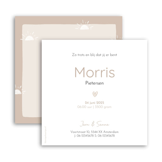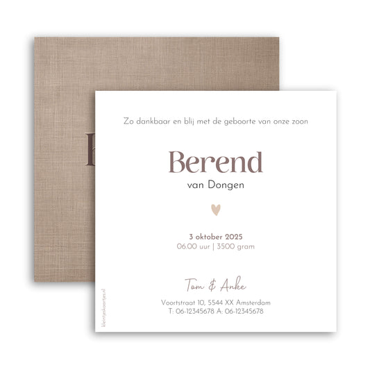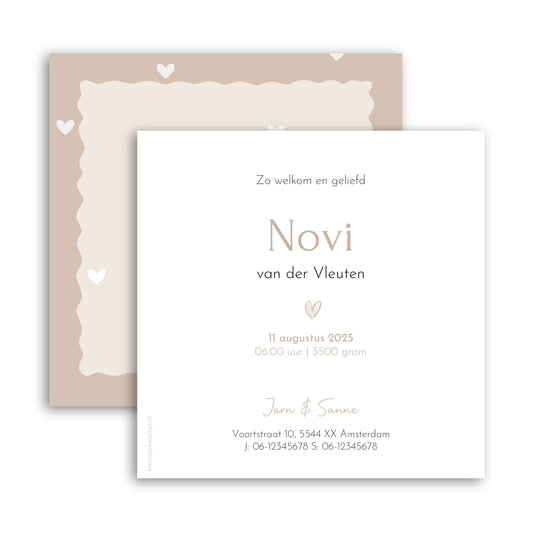 Enthousiast geworden? Je kunt de bestelling al vòòr de geboorte plaatsen (min. afname 50 stuks). Ook dan ontvang je eerst een digitale drukproef.