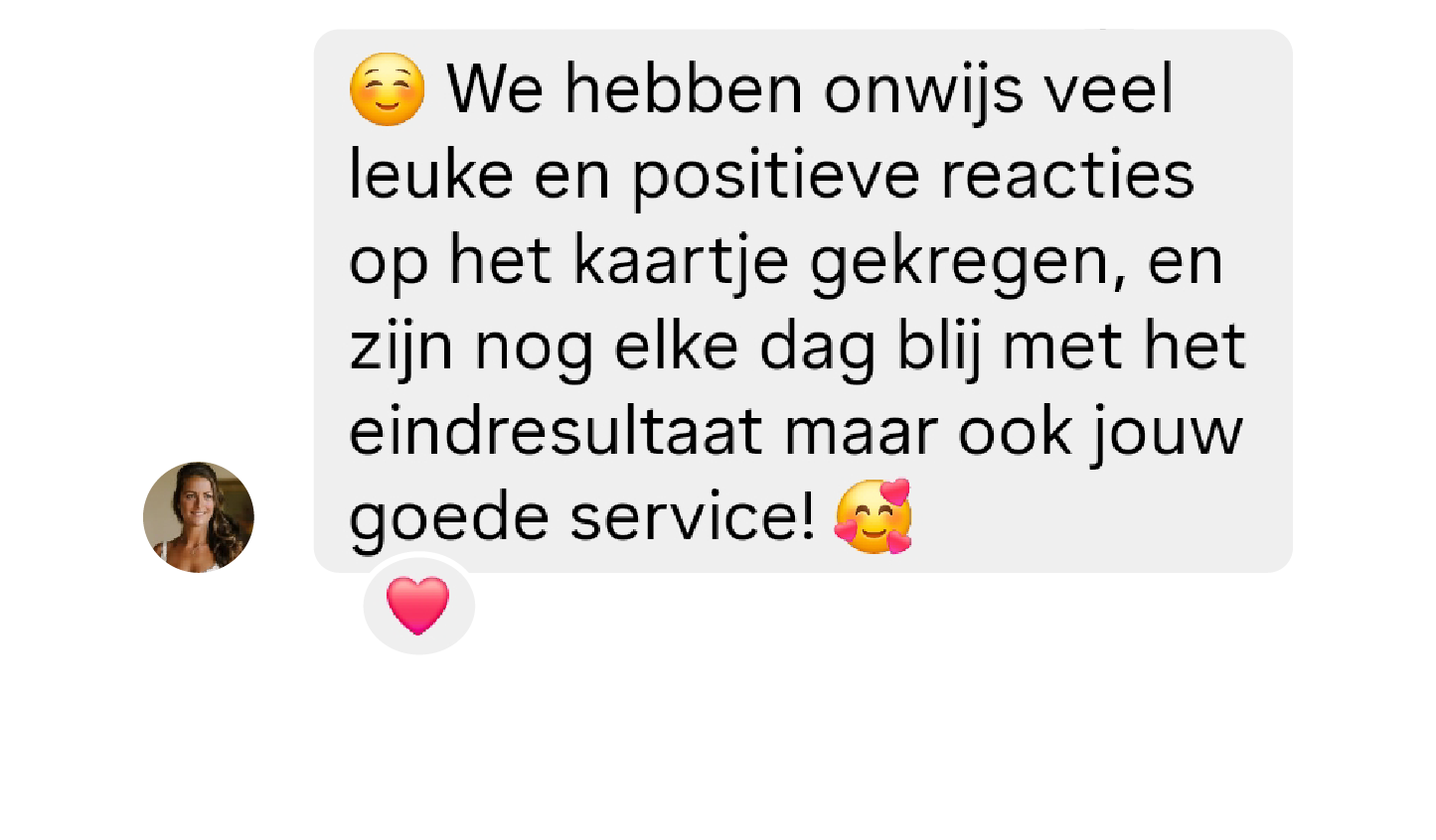 Enthousiast geworden? Je kunt de bestelling al vòòr de geboorte plaatsen (min. afname 50 stuks). Ook dan ontvang je eerst een digitale drukproef.
