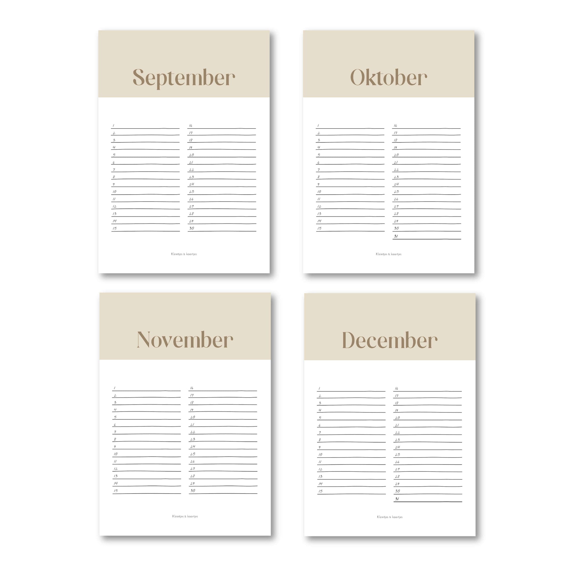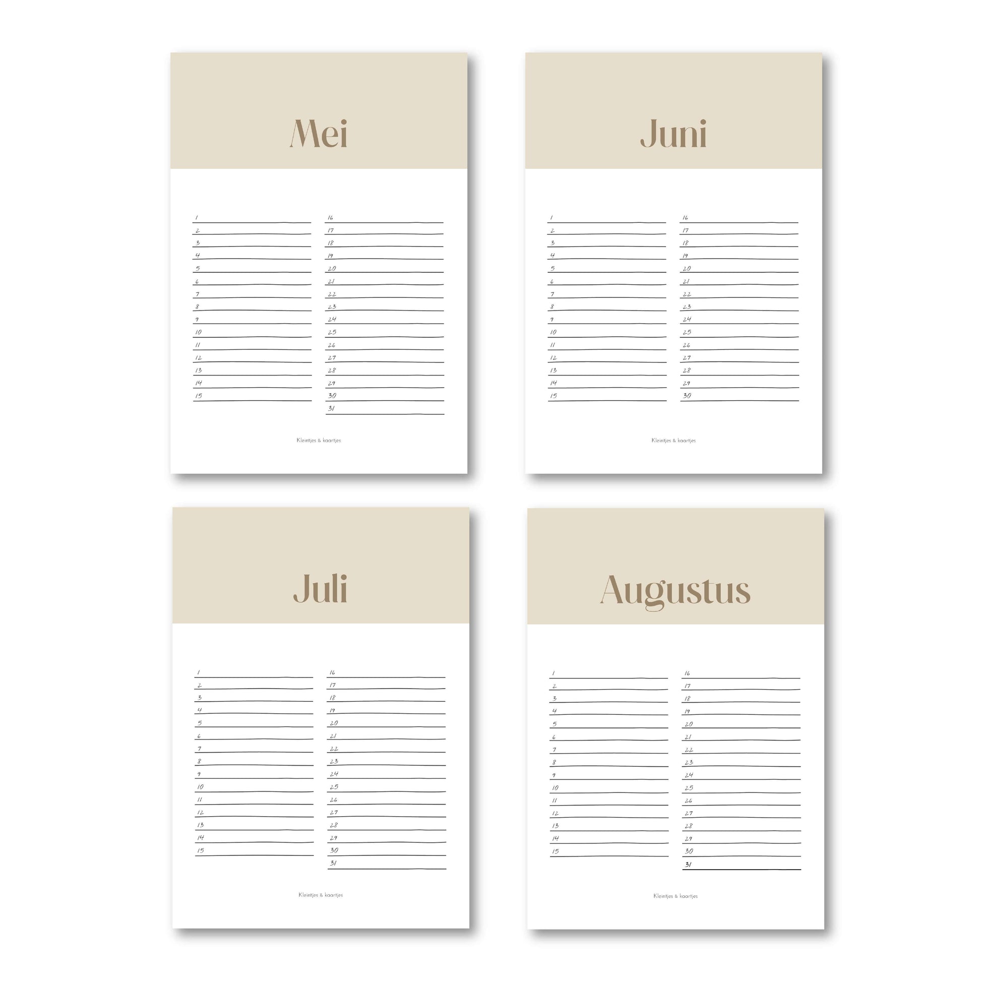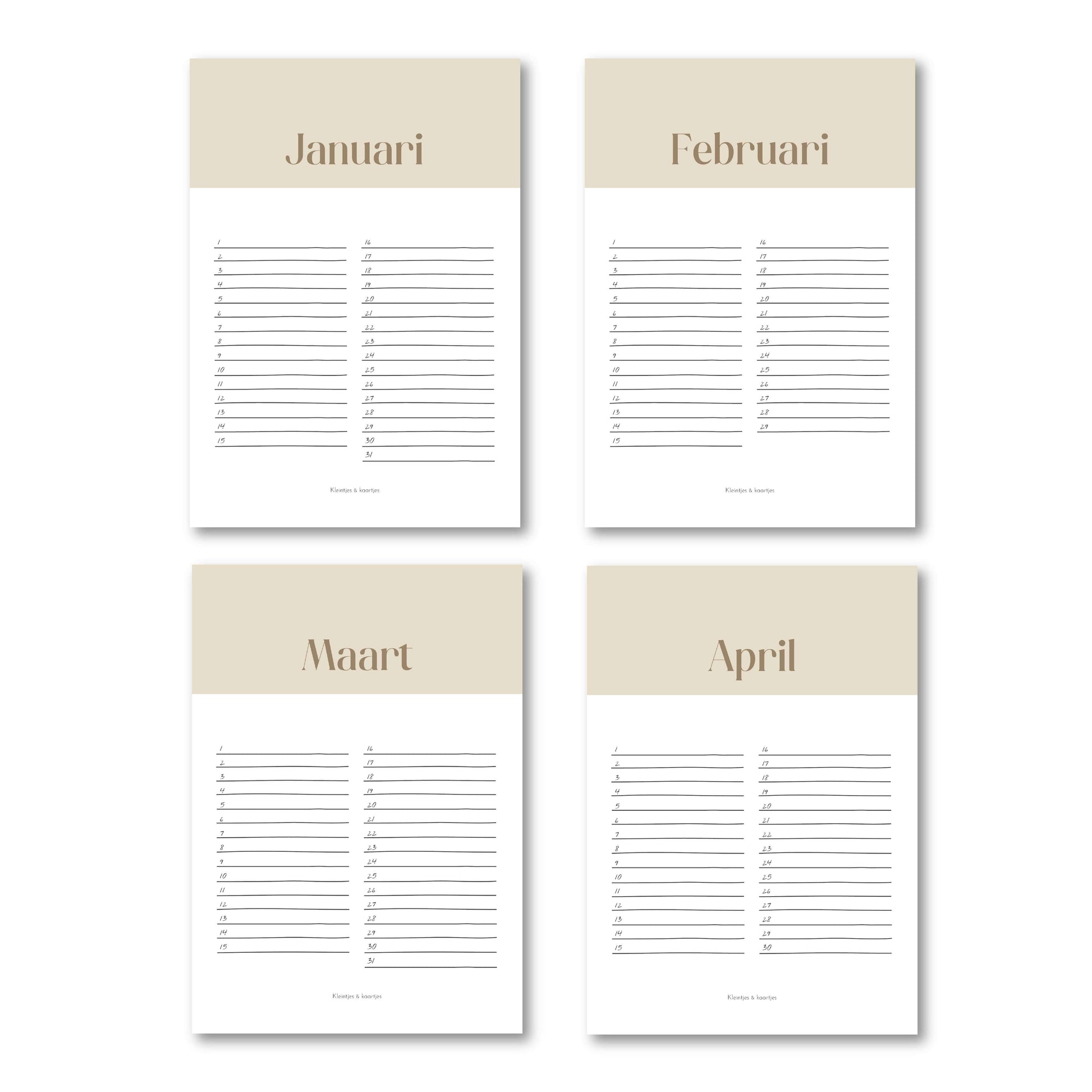 Verjaardagskalender beige
